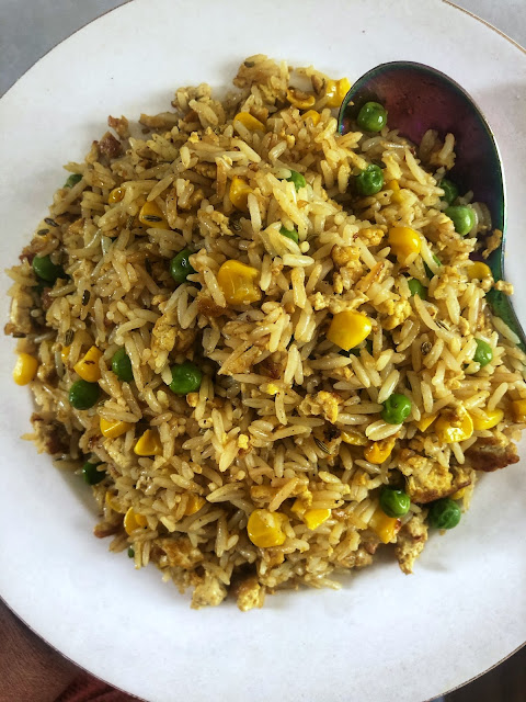 If your household is anything like mine, there’s usually some leftover plain rice lurking somewhere. This recipe takes that plain rice and elevates it to a level your tastebuds will thank you for. I hope you give this egg-free fried rice a try.